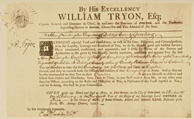 | Henry Ludington’s commission, from Governor Tryon, as captain in Col. Beverly Robinson’s regiment | 30 |