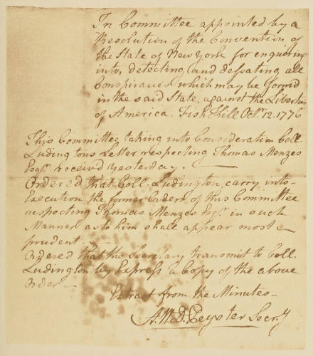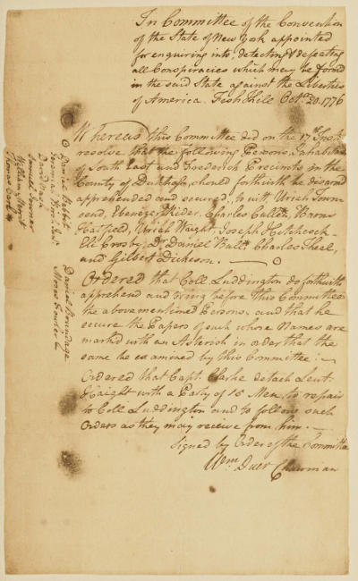 | Order of arrest from Committee on Conspiracies to Colonel Ludington | 58 |