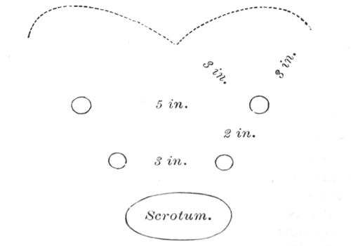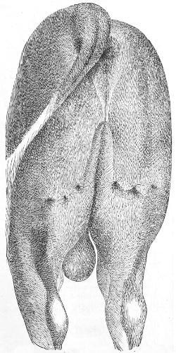 The escutcheon of the first order is the most developed; is also the best marked. The escutcheon of each of the five other orders is similar in form to that of the first order. It is, in some sort, only a proportionate reduction—a diminutive. It is the escutcheon of the first order, with the dimensions reduced or brought within less extended limits, reaching no longer the hock nor longer covering the interior of the thighs, nor yet reaching up to the vulva, remaining consequently at a distance greater or less from these boundaries.