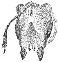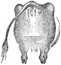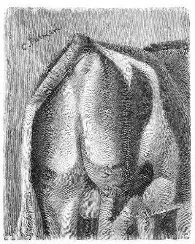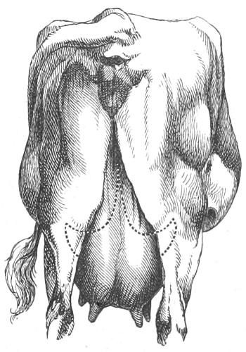 The discovery which I have made of the value of the escutcheon is designated by the contrary direction of the hair, and which had escaped the attention of every one, even those most interested in gaining the knowledge of it. It is necessary also to avow the effect produced by the change of direction of the hair is not glaring on the animal. It is merely a difference of luster, and the gloss on the surface of the escutcheon and the part of the skin surrounding it. The hair of the escutcheon is finer, shorter, more furry, and more silky. Its appearance, at the first glance, makes one think this part of the animal has been shaved. Compared with the ordinary hair, the skin of the udder appears to be more designed to be quicker seen on the part where appears the escutcheon.