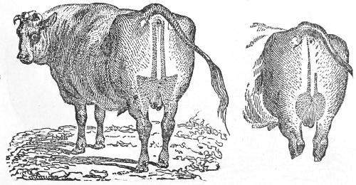 “The bulls are found marked with corresponding designs, as far as the sex permits, which indicate unerringly their good and poor qualities; and thus by a wise use of the knowledge acquired through the Guenon method, stock breeders can judiciously, and with almost certainty, select their cattle for the purposes in view, either for milking, butter-making, or beef, according to their desire, for all these results follow its teachings.”—State Fair Daily.