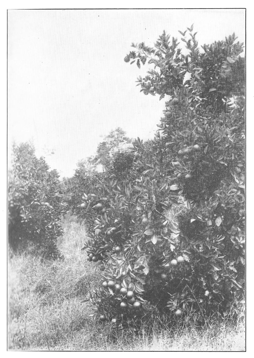 One of the eddies in this current was over a sweet potato field just south of the road. The ancient ditty about the grasshopper sitting on the sweet potato vine is true enough these days. The long drought has bred him in numbers, but that day the golden yellow butterflies rather{17} crowded him off. The Florida sweet potato is delicious. There is a nice golden yellow taste to its well-cooked pulp that crosses the word “enough” out of a Northerner’s gastronomic dictionary. I remember as a boy studying history unwillingly, yet reading with pleasure of the part taken by the Southern troops under Marion, “the swamp fox,” in defying the British under Tarleton and thus helping win the war of the Revolution. The legend ran that an embassy of British officers came to Marion’s camp to discuss certain matters with them and found them making a meal of sweet potatoes only. Whereupon the embassy went back and told Tarleton that he could never conquer men who could fight so well on so meager a diet. At the time I sympathized with Marion and his men. Now, having tasted the Southern sweet potato in its native wilds, I sympathize with the British who did not know how well fed their enemies were.