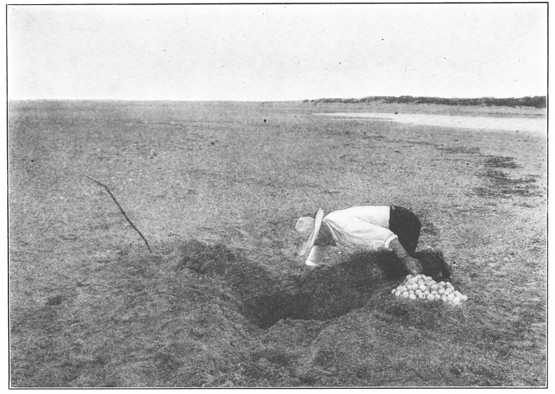 The brackish tides that swirl up from the sea to the deep water off the Jacksonville wharves speed with little loss of vigor on, many broad miles into the heart of Florida. To march along this water is to promenade a river side and a sea beach in one. Splashing through the shallows I find the water as full of fish life as the woods are of birds, or the air of butterflies. You can look nowhere without seeing one, usually all forms in numbers. The mullet leap sometimes six feet in the air from the river surface, gleaming silver in the sun. A blue crab scuttles, left side foremost, from the margin toward deep water, his blue claws conspicuous and marking the species, which is Southern in its habitat though found in numbers as far north as the Jersey coast. This crab is very plentiful here, the neighbors catching him with ease by the simple expedient of tying a piece of ancient meat to a string which they drop from the wharf and occasionally draw up. The crab will be found feeding on and so