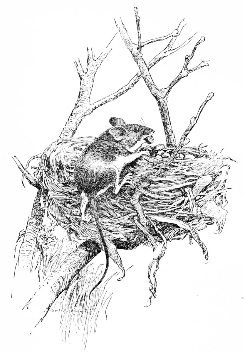 I never can help chasing them, though I know well what is about to happen. Nor do I expect to catch one, for, fat as they are, they move with surprising rapidity. Even if I happen to know where his hole is by the pile of dirt at the door and rush between him and it, I am no nearer getting my game. I always fancy that the fat shoulders of the woodchuck jiggle with laughter and his little pig eyes twinkle, for that is just what he expects and is prepared for. He{8} keeps right on in his straight line, then psst! he vanishes. You don’t see him dive or turn or hide. He just goes out of sight. You may poke about in the grass for a long time before you find the secret entrance by which he has returned to his burrow. Sometimes he has two of them. They are dug from within outward and no tell-tale trace of dirt is left to mark their location. This has all been carried down with infinite pains, then up, and left at the public door, where all may see it. The woodchuck is the very mark and origin of the paunchy gnome, which is said to guard buried treasures, and which bobs out of the earth, frightens Hob from his intended mining, then bobs back into the earth to guard the gold.