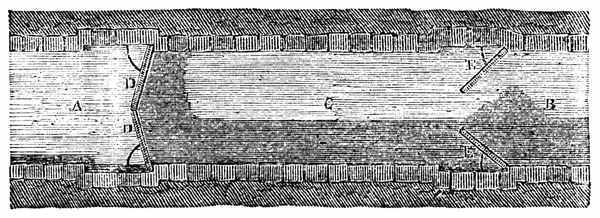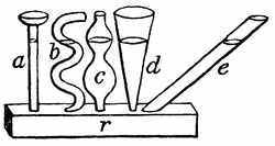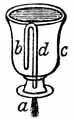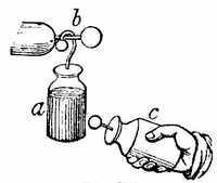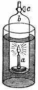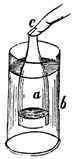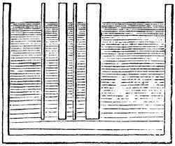 11. Filling of Spaces by Liquids and Gases.—It is the freeness with which the particles of liquids and gases move among each other that enables them to insinuate themselves into spaces every where. They are ever ready to enter into any substances which have interstices or pores of such size as will admit them. There are mingled with the grains of the soil not only water, but air and gases. These are present also in all living substances, both vegetable and animal. Water is the chief part of sap and of blood, and air and gases always go with water. Part of the air that we breathe in enters the blood in the lungs, and courses with it through the system. The fishes could not live in water if there were not air mingled with it. This can be proved by experiment. If you put a fish into a close vessel it will soon die, because it uses up all the air that is in the water.[17] In an open vessel the fish is kept alive by the constant accessions of fresh air to the water.
