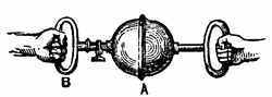7. Forms of Matter.—Matter appears in three forms: solid, liquid, and gaseous or aeriform—that is, like air. Sometimes matter is spoken of as having only two forms—solid and fluid. In this case fluids are divided into[15] two classes, the elastic and non-elastic. The air and the various gases and vapors are the elastic fluids; while those which are called liquids are the non-elastic fluids. A foot-ball bounds because the air in it is an elastic fluid. If it were filled with a non-elastic fluid; as water, it would not bound. When water takes the form of steam it is an elastic fluid. Though it is very common to use the expression elastic fluids, the division of matter into three forms is the one usually recognized.