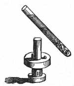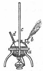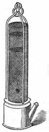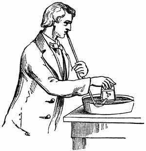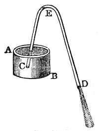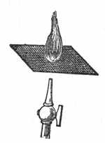 [4] As in the case of many other inventions, so here the same idea was originated and put to practical use by more minds than one. George Stephenson, who from being a common engine-wright in a colliery rose step by step till he invented the locomotive, constructed a lamp which illustrated in another way the same principle as the lamp of Davy does—in other words, he invented another safety-lamp. But this does not in the least detract from the glory which the invention has given to the name of Davy, for each acted independently of the other. In Davy's case, it is to be remarked, there was a long course of scientific reasoning and investigation which led him at length to the invention, the record of which is exceedingly interesting. No invention or discovery is made without thought, though accident may suggest the thought; but here is an invention which, without any suggestion by accident, was evolved by laborious and long-continued thought, proceeding step by step to its conclusion.