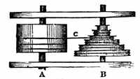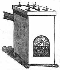 [3] I was once consulted in regard to a smoking stove. It was an open Franklin stove, the pipe of which went through a fire-board into a monstrous chimney. I recommended that a pipe with a knee should extend from the pipe of the stove a little way up the chimney. The expedient was successful, because but a small body of air, that in the pipe, needed to be heated to establish an upward current.