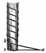 A gold-beater can hammer a grain of gold into a leaf[20] covering a space of fifty square inches. So thin is it that it would take 282,000 of such leaves, laid upon each other, to make the thickness of an inch. And yet so even and perfect is this thin layer of gold, that when it is laid upon any surface in gilding it has the appearance of solid gold. A fifty millionth part of this grain of gold thus hammered out can be seen by the aid of a microscope which magnifies the diameter of an object ten times. But the division of gold is made even more minute than this in the manufacture of the wire of gold-lace. It is done in this way: A bar of silver weighing 180 ounces is covered with a layer of gold weighing an ounce. It is then drawn through a series of holes in a steel plate, diminishing in diameter, till it at length comes out a very fine wire 4000 feet long. Each foot of it then has only the one 4000th part of the ounce of gold, and yet the silver is well covered.