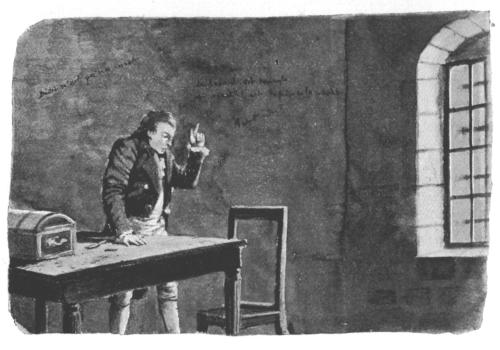 What a world from which to extract delight and entertainment! The unhappy Count wore out his patience in the attempt![13] At first, he amused himself with scribbling with a morsel of charcoal on the walls of his prison the dates of every happy event of his childhood; but from this dispiriting task he desisted, more discouraged than ever. The demon of scepticism next inspired him with evil counsel; and having framed into fearful sentences the axioms of his withering creed, he inscribed them also on his wall, between recollections consecrated to his sister and mother!