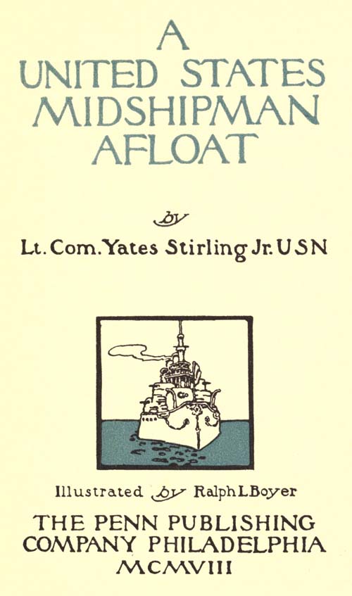 Any one familiar with the navy could have told by a glance that they were midshipmen, just graduated from the Naval Academy at Annapolis and in the distribution of their[9] class to the many ships of the navy, these two had received orders and were on their way to report for duty on board one of the powerful battle-ships lying directly before them.