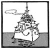 [8]Emerging from the tangle of buildings, the youths glanced about, and an exclamation of pleasure escaped them as a view of their nation’s sea power met their eyes: ten huge battle-ships resplendent in their glassy white and contrasting buff paint lay tied up, filling every foot of the dock frontage.
