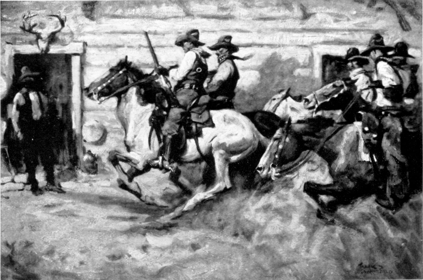 "Sure," went on the deliberate voice, ringing with scorn. "An' only a little while ago she called you a dog.... I reckon she meant a different kind of a dog than the hounds over there. For to say they were like you would be an insult to them.... Sure she hates you, an' I'll gamble right now she's got her arms around Wils's neck!"