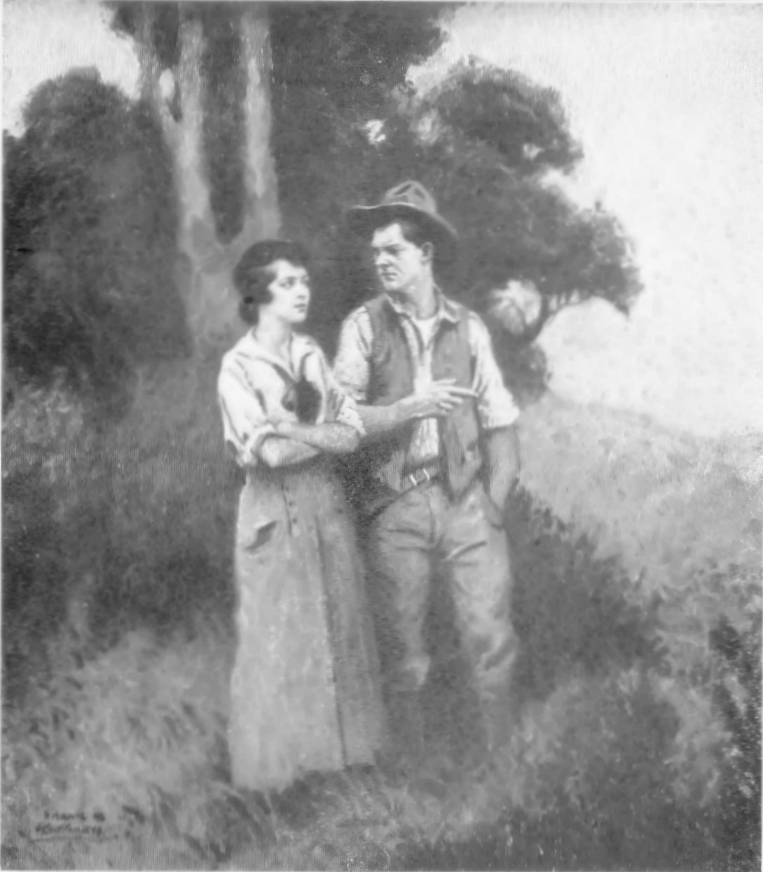The girl watched him come, conscious of an unfamiliar sense of uncertainty in this meeting, and of the fact that she was seeing him differently from any other time in the years he had been a playmate, a friend, almost like a brother. He had ridden for Belllounds for years, and was a cowboy because he loved cattle well and horses better, and above all a life in the open. Unlike most cowboys, he had been to school; he had a family in Denver that objected to his wild range life, and often importuned him to come home; he seemed aloof sometimes and not readily understood.