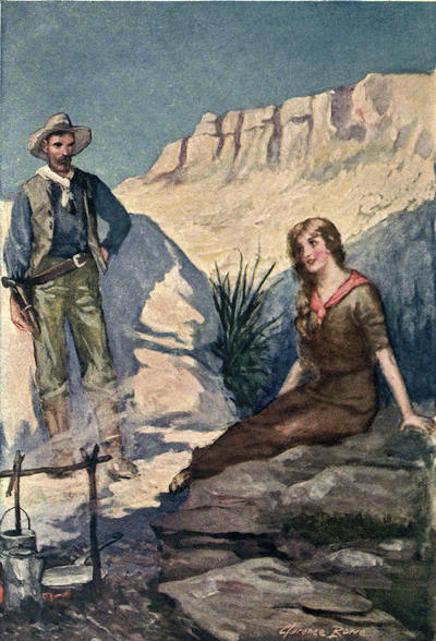 “Not much grub,” said his father. “I ain’t grub hungry,” and flung himself on [8]the ground before the camp fire. “I’m dead beat—and my bones ache,” he added.